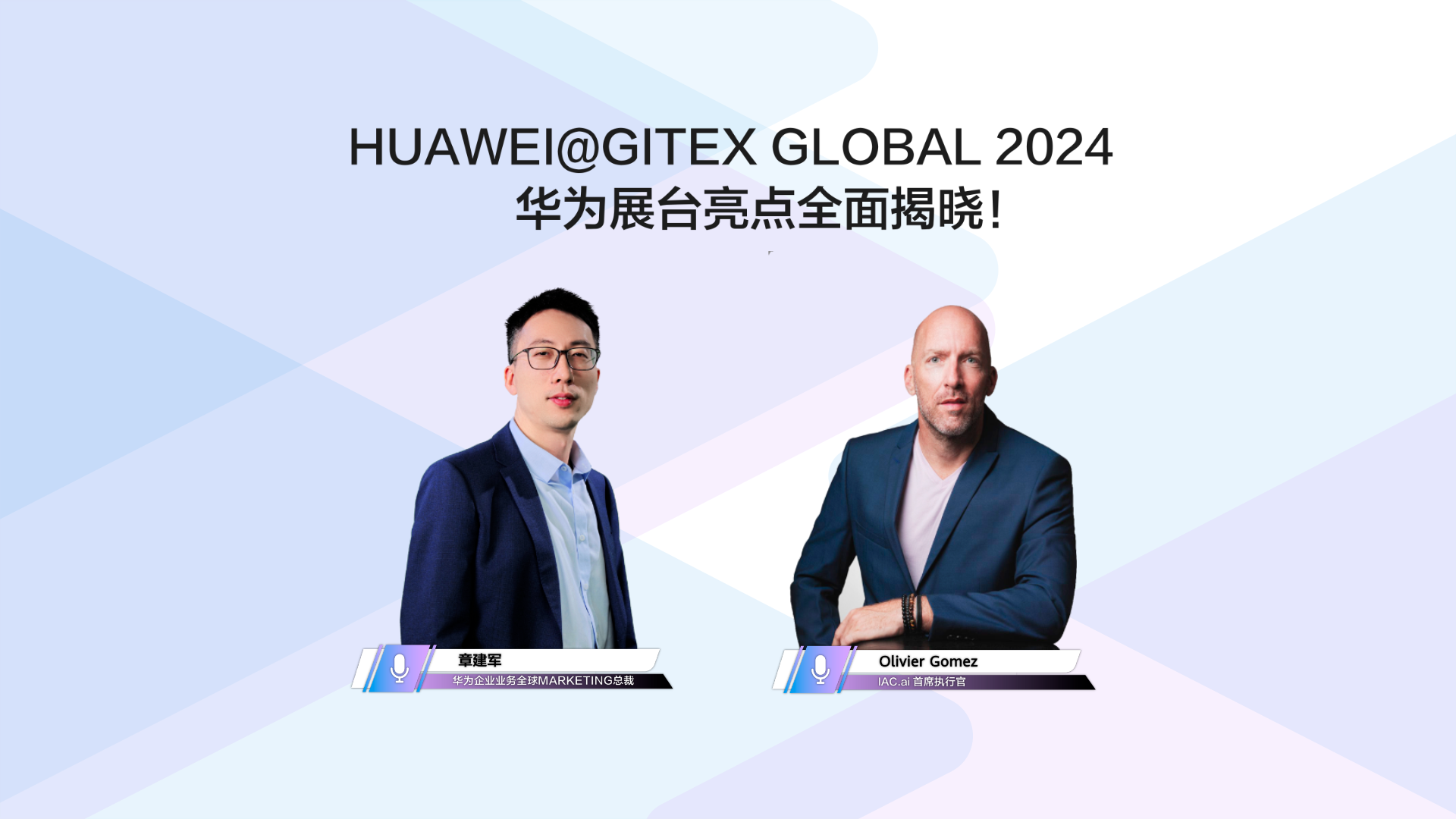 GITEX GLOBAL 2024展会期间,华为企业业务全球Marketing总裁章建军接受IAC.ai 首席执行官Olivier Gomez采访,全面揭晓华为展台精彩亮点,分享最新行业数智化解决方案、最新产品升级及数智化转型案例。