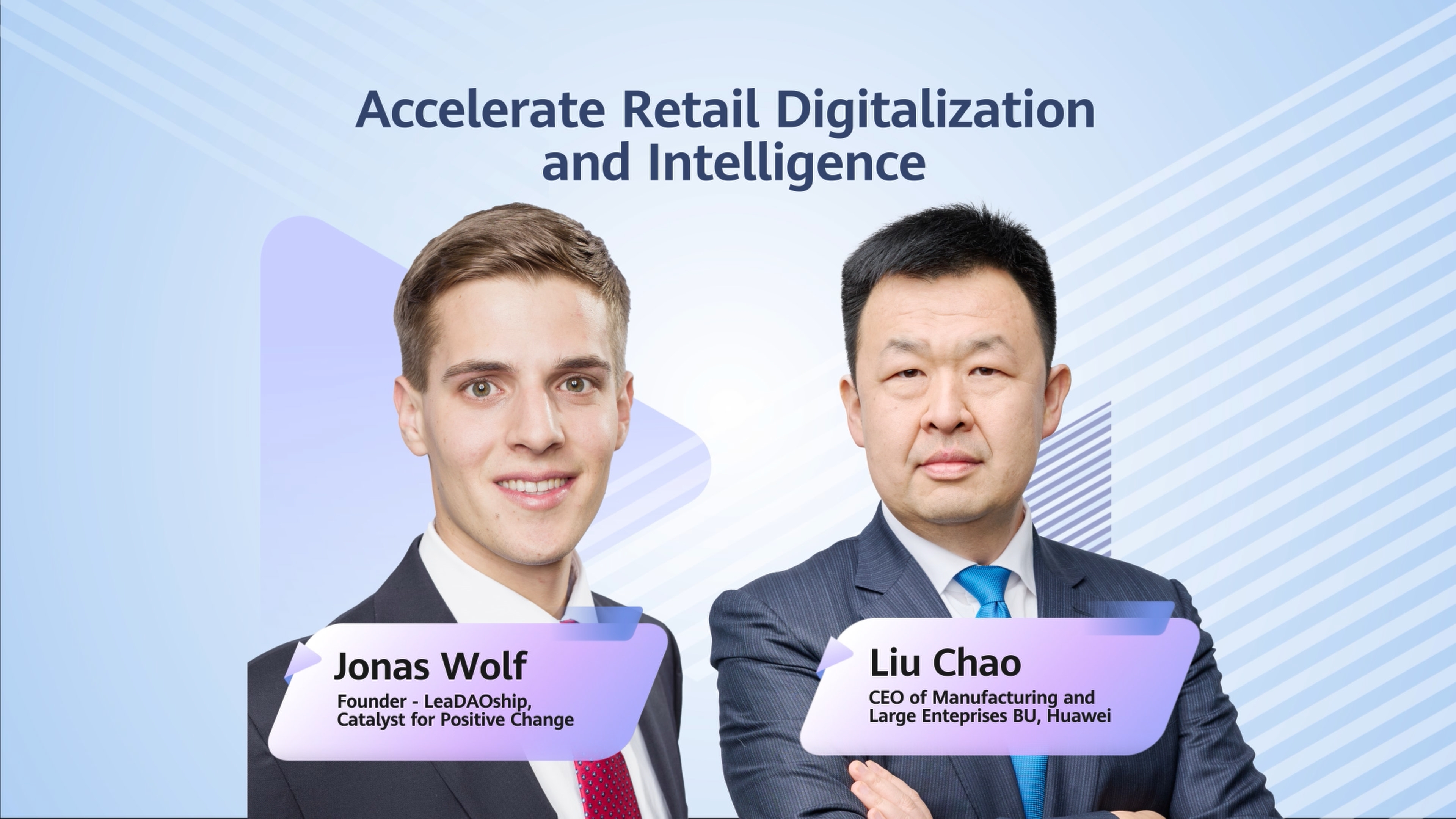 Liu Chao, CEO of Huawei Manufacturing and Large Enterprise Corps, and Jonas Wolf, founder of LeaDAOship, visited the Huawei Smart Retail booth at MWC2025 to talk about accelerating digital intelligence in retail. Discuss the innovation of smart retail solutions, such as the convergence of electronic
