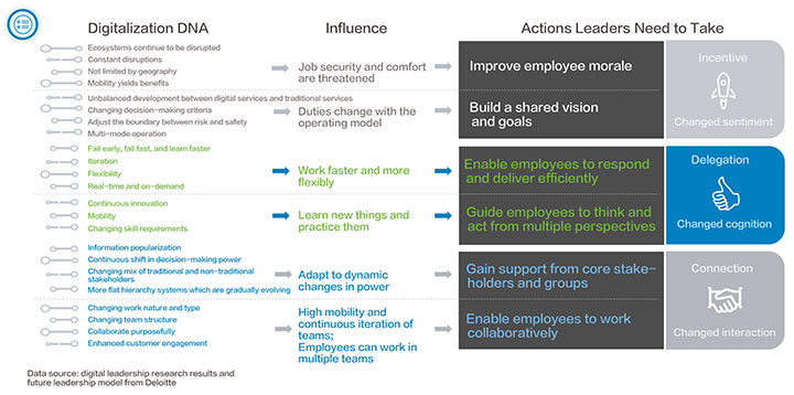 Energizing the whole organization: Digital leaders shall share culture and management ideas to stimulate the vitality of the organization.