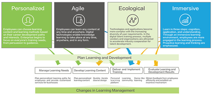 As learning at any time and lifelong learning become mainstream concepts, knowledge customization services will become prevalent. Meanwhile, more and more people have become accustomed to using the Internet to obtain learning resources for self-study, so the digital learning platform should focus on employees' learning needs and use diversified technical means to improve their learning efficiency.