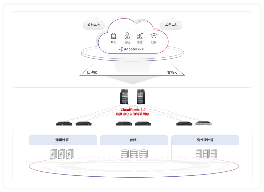 Huawei's L3.5 data center autonomous driving network can also interconnect with customers' legacy IT management systems to automate the entire process, achieving easy deployment, easy O&M, and easy evolution.